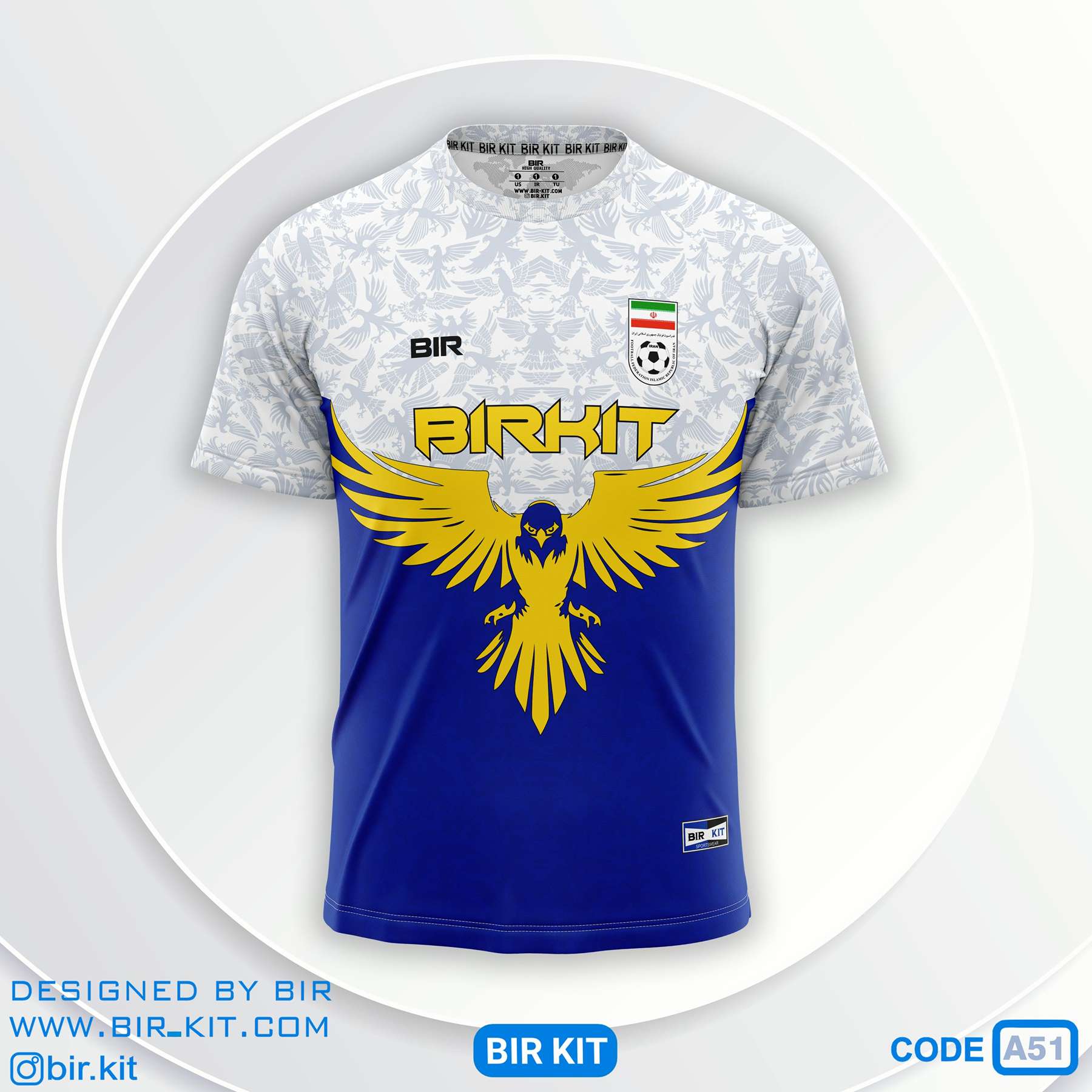 لباس فوتبال سفید آبی طرح عقاب کدa51-3