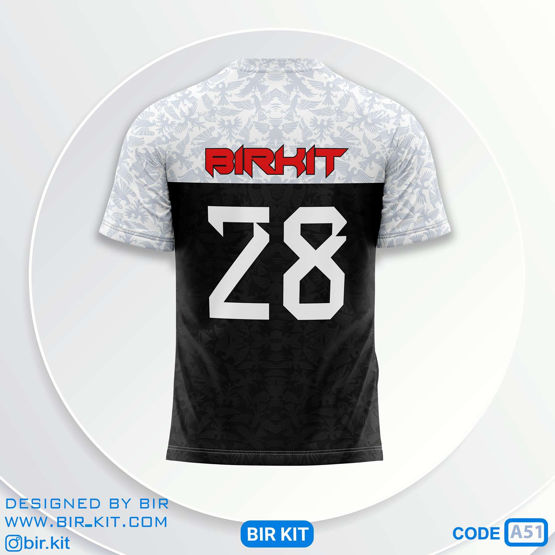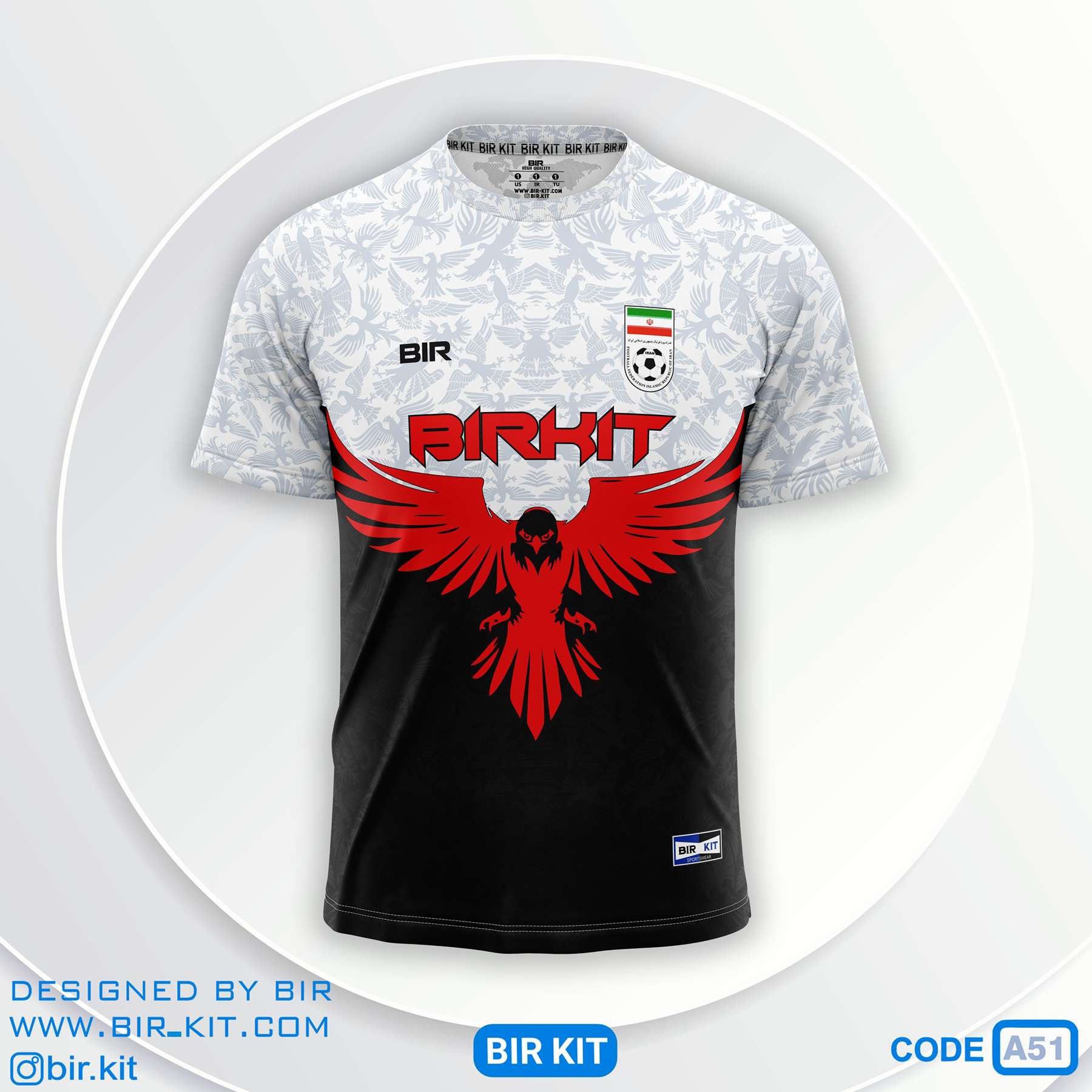 لباس فوتبال سفید مشکی طرح عقاب کد a51-4